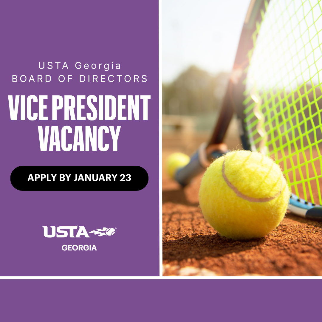 On behalf of Eric Schmook (USTA Georgia Nominating Committee Chair), please be advised that the position of Vice President is now vacant for the remainder of the 2025-26 term.